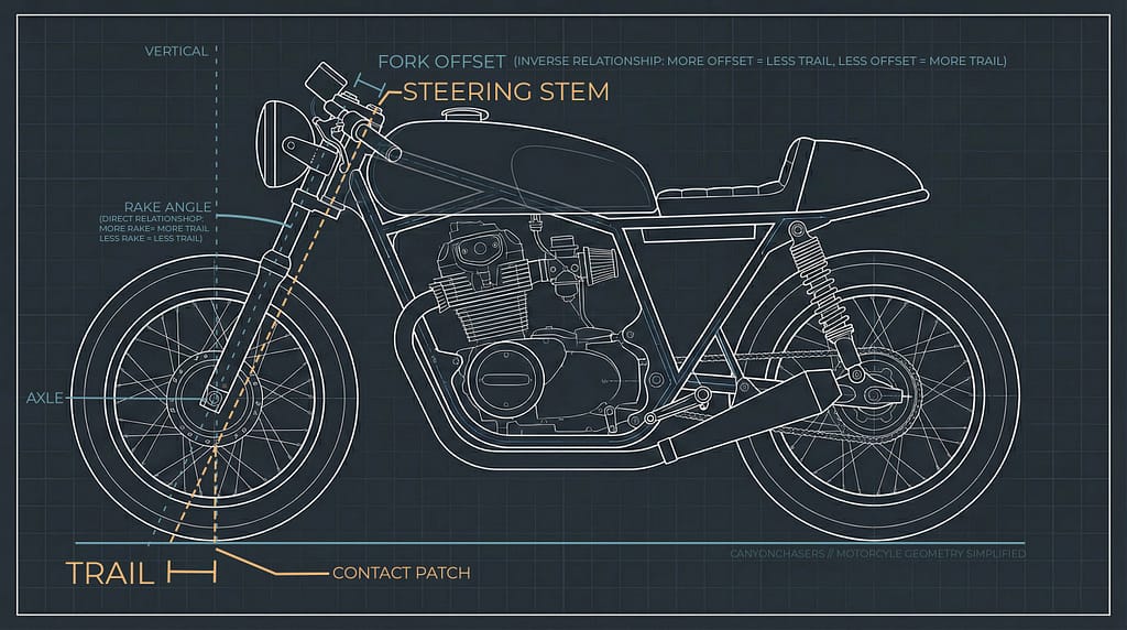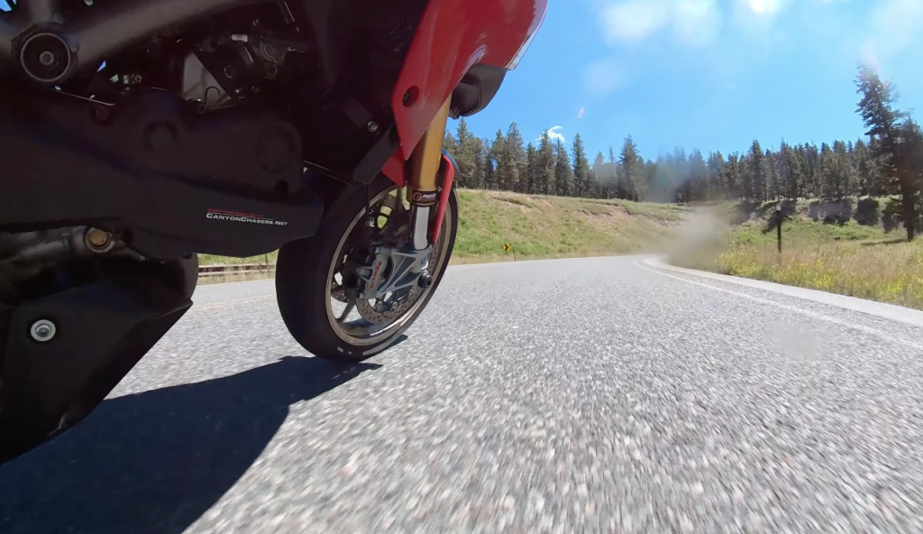 You might be wondering if this geometry shift changes if you use the rear brake pedal through the turn. The answer is complicated, and applying front-end physics to the rear tire is a great way to have an expensive afternoon.